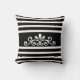 Elegant floral vector on black and white striped background Throw Pillow.