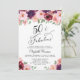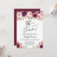 Virtual 50th birthday party invitation featuring "50 & Fabulous" in an elegant script and watercolor bouquets of burgundy red, pink and purple florals.