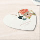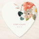 Delightful heat shaped wedding paper coaster, featuring couple names and date in rich dark ochre, against a lovely chic ivory background. The colourful watervolor blooms excude a sense of style and youthful joy.