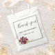 Elegant black Floral Wedding Favour Bag. Floral in golden and burgundy on a white background. Frame and text in a Black to match the floral design on a white background colour. Thank you in an elegant script font. Express your gratitude and say Thank you with a treat to your guests and fill this favour bag with your choice. This favour bag is also available in other colours.