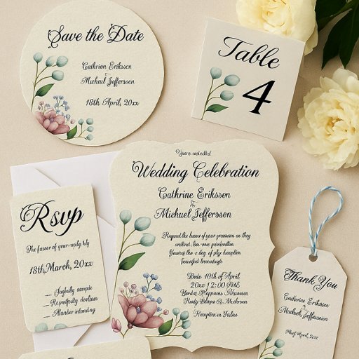 This elegant design features a graceful arrangement of hand-painted floral elements in soft, pastel tones. The design showcases delicate white buds, gentle blue blossoms, and a vibrant magnolia flower, all set against a soft grey background. The minimalist floral accents evoke a sense of timeless beauty and romance, perfect for couples seeking a classic yet sophisticated look. Ideal for formal weddings, this design embodies understated elegance, making it a beautiful choice for any season. Personalise this invitation to set the tone for your special day with a touch of refined nature.