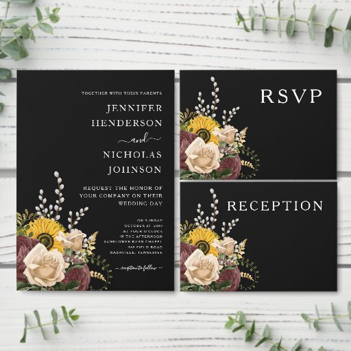 Elegant Black Sunflower Wedding Invitation SuiteDesigned by Maggie B Design