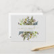 This design features watercolor wildflowers and custom script calligraphy on a soft grey and white background.