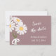 The simplicity of a bouquet of white daisies, aided by the white script font, creates an elegant yet minimalistic wedding design. Kraft paper adds a charming rustic backdrop. The text is fully editable.
