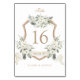 Elegant White Flowers and Greenery Wedding Crest Table Numbers