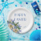 Elegant Floral White Lilies Blue 'Happy Easter' Paper Plate