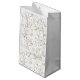 White floral personalised small paper bag for a small beauty business. Elegant branding design with golden khaki flowers on ivory abstract background. Edit text with easy to use Zazzle editing tool! Add the name and business. Visit the shop to see all the collection. There are planner, notebook, note pad, binder, pen, clipboard and so much more available. And of course, sanitisers and masks are also in the shop!