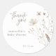 An elegant floral wildflower baby shower thank you sticker.. This gender neutral baby shower round thank you sticker features soft brown, green and neutral earth tones. Customise the sticker with the mother-to-be's name and baby shower date.