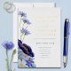 Beautiful spring and summer floral watercolor blue and gold foil wedding invitation with wildflowers and foliage in green, blue, cornflower blue, navy blue and purple hues, ideal for a unique spring or summer wedding. Romantic modern typography script in gold foil and navy blue complements the stunning hand painted artwork which includes cornflowers, poppy, cosmos, forget me nots and delicate foliage. Chic stylish wedding invitations perfect for a spring meadow, summer garden wedding. Original artwork by artist Catherine Sweetman. Find matching stationary and supplies in the elegant summer floral blue wedding suite collection