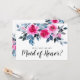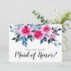 Elegant Will You Be My Maid Of Honour card design featuring bright pink watercolor roses, blue and grey foliage on a white background.