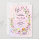 Celebrate the joyful arrival of a little one with this elegant floral tea party baby shower invitation. This beautiful design features delicate watercolor flowers arranged in a graceful wreath, soft butterflies, and a charming teacup with colorful macarons. The soft pink background and botanical details create a romantic, garden-inspired style perfect for a sophisticated baby shower celebration.