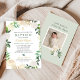 Elegant Floral Wreath Baptism Baby Girl Green Gold Invitation