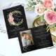 Elegant Floral Wreath on Black w/ Details Wedding Invitation