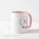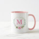 Elegant Floral Wreath Pink Monogram With Rose Mug