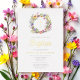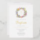 Elegant Floral Wreath Religious Girl Baptism Gold Foil Invitation.