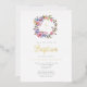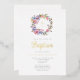 Elegant Floral Wreath Religious Girl Baptism Gold Foil Invitation.