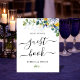 A radiant colourful wedding guest book sign with beautiful watercolor green botanical foliage and eucalyptus leaves. Enhance your wedding décor with this elegant floral yellow, blue, and white wedding pedestal sign. Featuring a sophisticated design adorned with delicate yellow blooms, soft white florals, and elegant blue accents, this sign exudes timeless charm and romance. The refined typography and airy watercolor details create a fresh and stylish aesthetic, making it perfect for welcoming guests, displaying seating arrangements, or highlighting important details. Ideal for spring and summer weddings, garden celebrations, or countryside venues, this beautifully crafted pedestal sign adds a touch of elegance and sophistication to your special day.