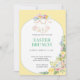 Elegant Floral Yellow invitation. Send your brunch guests this delightful invite with a bunny in a Easter bonnet full of flowers.. Beautiful pastel colours perfect for spring. delightful-doodles.