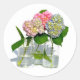 Classic rustic pink, blue,  and green Hydrangeas in Mason jars