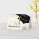 Stylish graduation greeting card, done in a white, grey, and gold tone flourish pattern, with graphics of a black graduate's mortarboard cap, with a gold tone tassel, in the upper right corner. Gold tone graphic script text reads Congratulations, on the front. Black text greeting, on the inside, is ready to personalise to read what you want. Pretty card to your favourite graduating girl.