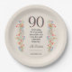 Elegant Flower 90 Years Party Floral 90th Birthday Paper Plate