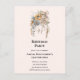 A party invitation postcard with a pretty bouquet of flowers in neutral colours of brown, peach and orange. A feathered dreamcatcher adds an elegant mystical flair.