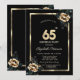 Elegant Flower Gold Frame Black 65th Birthday Invitation