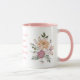 This elegant mug perfect for a best friend who accepts you for who you are has a beautiful bouquet of flowers, berries and leaves against a white background and a lovely friendship quote by an unknown person in a light pink font: A friend is one who overlooks your broken fence and admires the flowers in your garden.