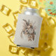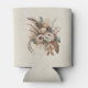 Can cooler with a pretty bouquet of peach florals, surrounded by brownish bronze grasses and foliage with feather accents.