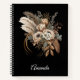 Spiral notebook with a pretty bouquet of peach florals, surrounded by brownish bronze grasses and foliage with feather accents.