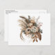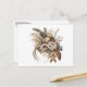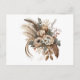 Postcard with a pretty bouquet of peach florals, surrounded by brownish bronze grasses and foliage with feather accents.