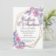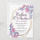 This modern and elegant formal sweet sixteen birthday party invitation is perfect for the spring or summer season. It features handpainted berry pink, lilac purple, and teal green flowers and berries on top of a faux printed gold geometric terrarium frame and simple white background. It's pretty, country, sweet, girly, and trendy; the perfect design for your perfect event.