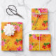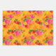 Floral bouquets on an orange background are featured on these wrapping paper sheets, fun for any occasions.