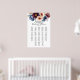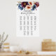 Elegant wedding seating chart with navy, burgundy and blush flowers, up to 18 tables