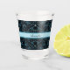 Elegant Flowery Black and Teal Damask Shot Glass
