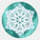 Elegant Fluffy Snowflake Teal Green Faux Sparkles Classic Round Sticker