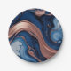 Elegant Fluid Art with Copper and Blue Swirls Paper Plate