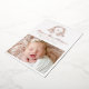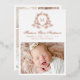 Celebrate your baby’s arrival with this elegant rose gold foil birth announcement card. The front features your baby’s monogram initial framed by a stunning rose gold foil floral crest on a white background. Your little one’s full name shines in coordinating rose gold foil calligraphy, with space below for birth stats, family name, and a horizontal newborn photo. The back showcases a matching three-photo collage, perfect for sharing more of your baby’s precious moments. Personalise with your baby’s details to create a luxurious keepsake for family and friends.