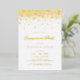 Invite guests with this customisable gold foil engagement party invitation. It features gold foil confetti dots and elegant script. Personalise this foil-pressed engagement party invitation by adding names, date, time and other event details. This modern gold foil engagement party invitation is available in other background colours and foil finishes.