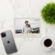 An elegant, minimal engagement announcement featuring fully customisable foil pressed text and a large single photo. Just swap in your own photo and change the name(s)/message. The back of the card is blank, but add a longer (standard print - not foil) message if you wish or upload another photo instead. The design is available in other colours and in similar designs with more photos in my store.