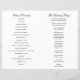 This program is an 8.5 x 11 flyer page that requires you to fold it to assemble. Classic understated black and white wedding program with a modern touch featuring the elegant script of the word "Wedding" on the outside "cover" with black border. All text is editable, you can move or remove anything that you don't need.