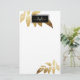 Here's a lovely, option for your home office stationery. The design features your monogram initial in white together with your first or last name over black. This information is complemented by a faux gold foil botanical leaf foliage at the top and bottom of the of the paper. Quite an elegant, trendy look. If you have a design question or would like to see this design on another product, please feel free to contact me at jschmidtdesignworks@gmail.com. Design © Judith Schmidt.
