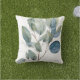 Elegant foliage watercolor green teal leaf patern cushion
