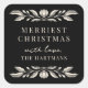 Send your holiday wishes with timeless elegance using these personalised Christmas stickers. Designed with a black background, vintage-inspired folk art floral accents, and a mix of classic serif and handwritten script fonts, the greeting reads “Merriest Christmas with love” and can be customised with your family name. Perfect for sealing envelopes, decorating Christmas packages, or adding a stylish finishing touch to holiday cards and gifts.