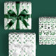 This elegant wrapping paper set features folk inspired watercolor illustrations in forest green over a white background.