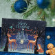 Design Details: Features a beautiful dark navy blue background, sparkling stars, and gentle snow.