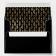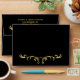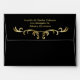 Elegant all-purpose envelope done in black, with graphics of a gold ornamental swirl, on the front and on the back flap. Inside the envelope there is graphics of a gold on black feather pattern. Personalise the return address to suit your needs. Great for special occasion invites, thank you cards and announcements.