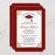 Elegant dark red and gold tone graduation cap college or university graduation announcement and party invitation that is understated with an aged look filter applied. Simply personalise with your celebration details. Design by Holiday Hearts Designs (rights reserved).
