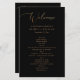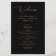 Make a stunning statement with this two‑sided wedding program featuring elegant gold look calligraphy on a black background. The front page presents your order of service, while the reverse includes your wedding party names, all set in timeless serif typography. The printed gold effect (not real foil) delivers a luxe contrast against the bold backdrop. Perfect for formal, black‑tie, or upscale weddings. This customisable program adds a polished and memorable touch to your ceremony suite.