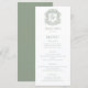 Elegant Formal Monogram Crest Sage Green Wedding Menu